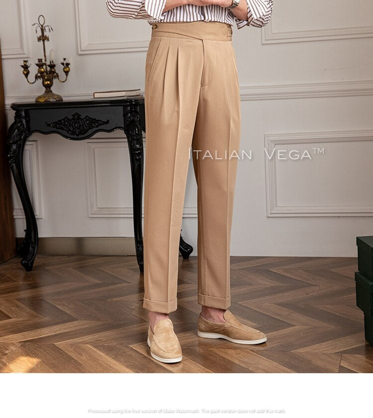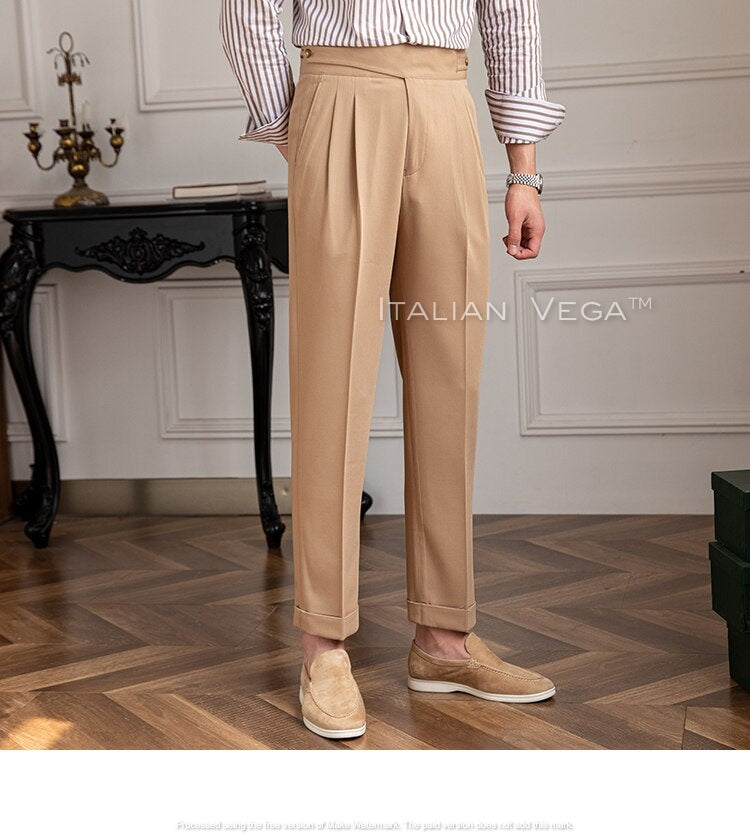 In addition to being constructed from Imported Superior Fabrics, Italian Vega Pants are built with top quality components and thoughtful construction. All our gurkha Pants men's are double canvassed, with fully fused Belt trouser, for greater versatility and superior shape for your Legs
