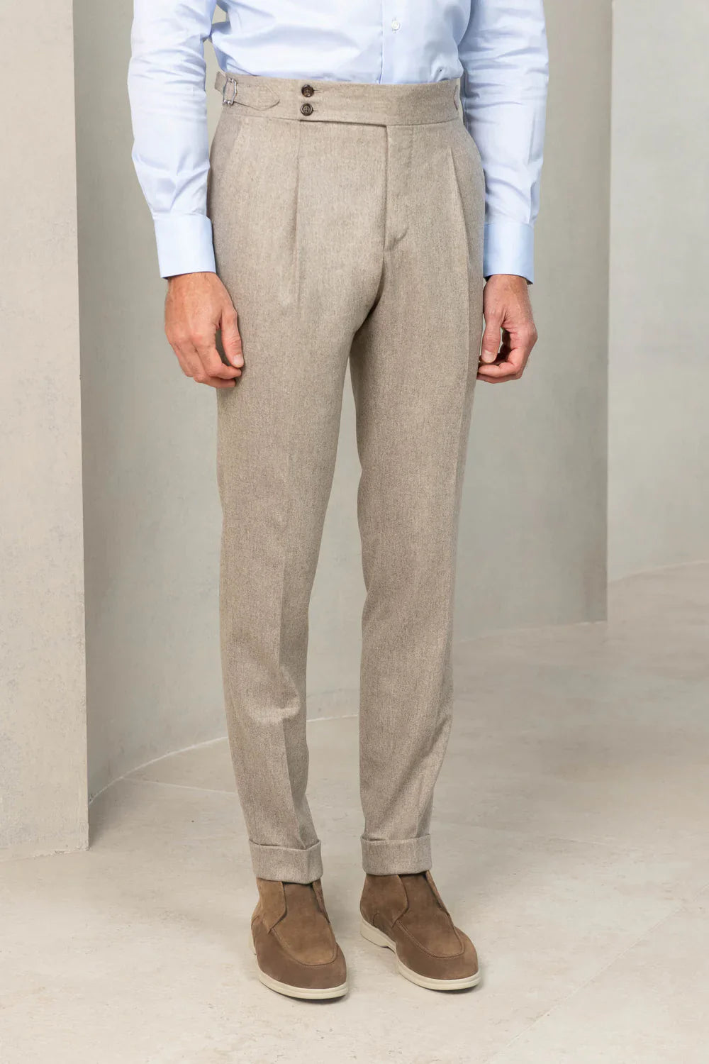 Elevate your wardrobe with the timeless elegance of Italian Vega's Signature Flannel Gurkha Pants. Crafted with precision and sophistication, these pants embody the essence of refined style and unmatched comfort.