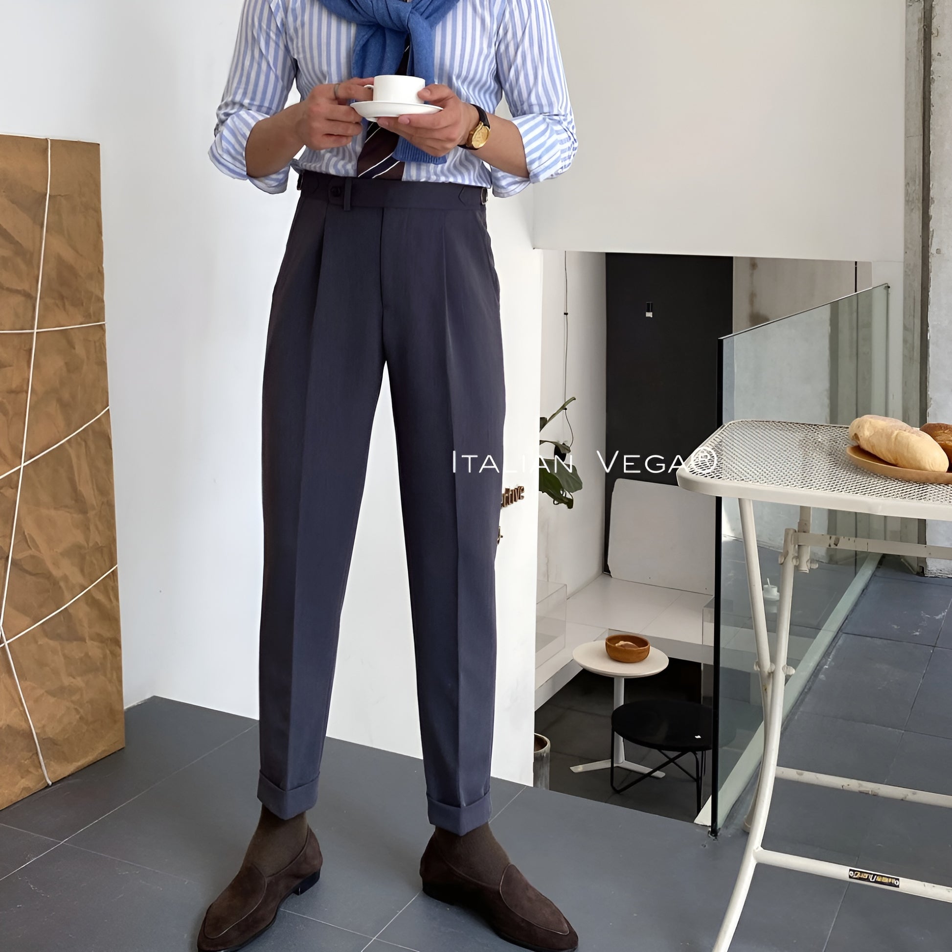 In addition to being constructed from Imported Superior Fabrics, Italian Vega Pants are built with top quality components and thoughtful construction. All our gurkha Pants men's are double canvassed, with fully fused Belt trouser, for greater versatility and superior shape for your Legs