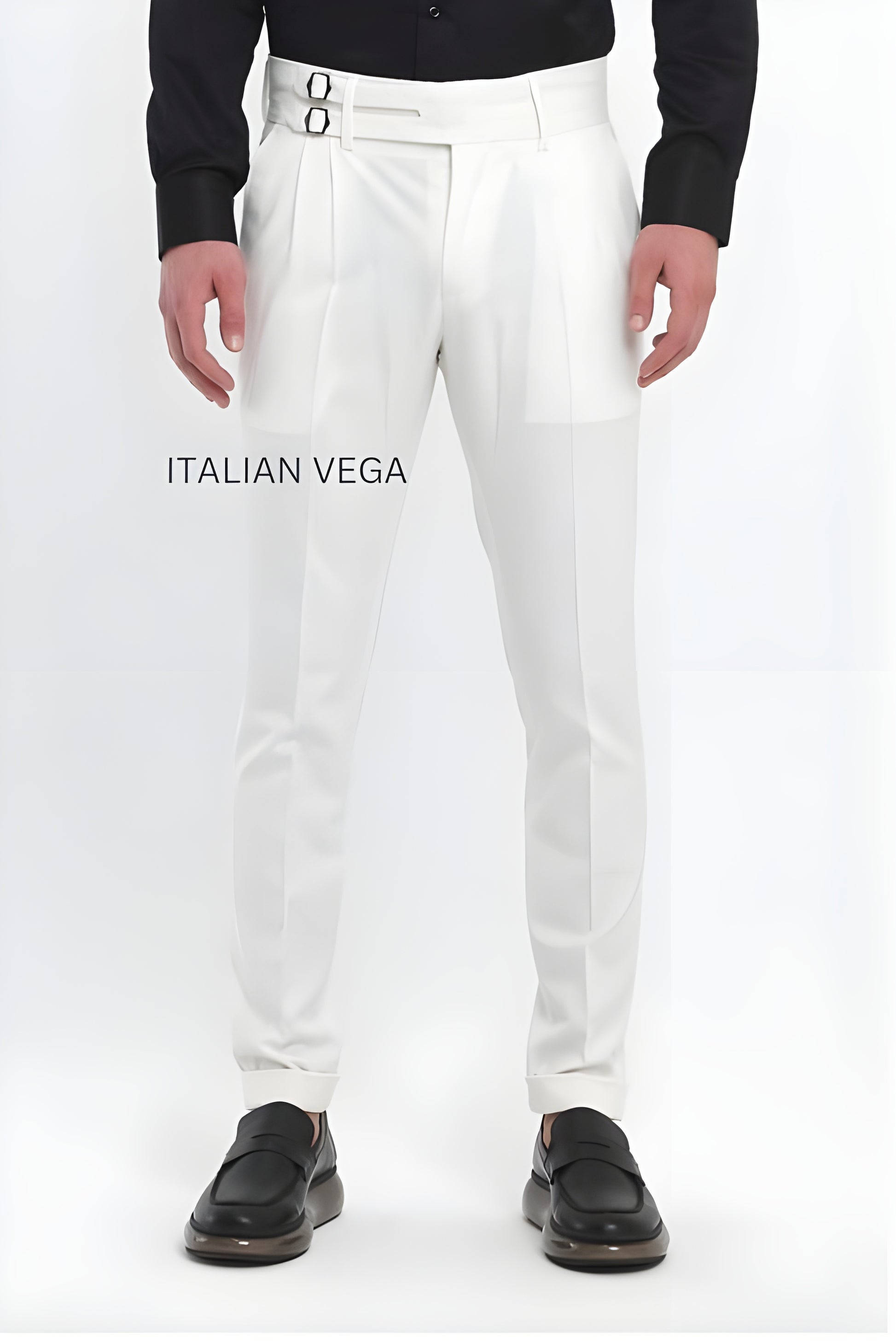 White Double Buckle Formal Gurkha Pants by ITALIAN VEGA®