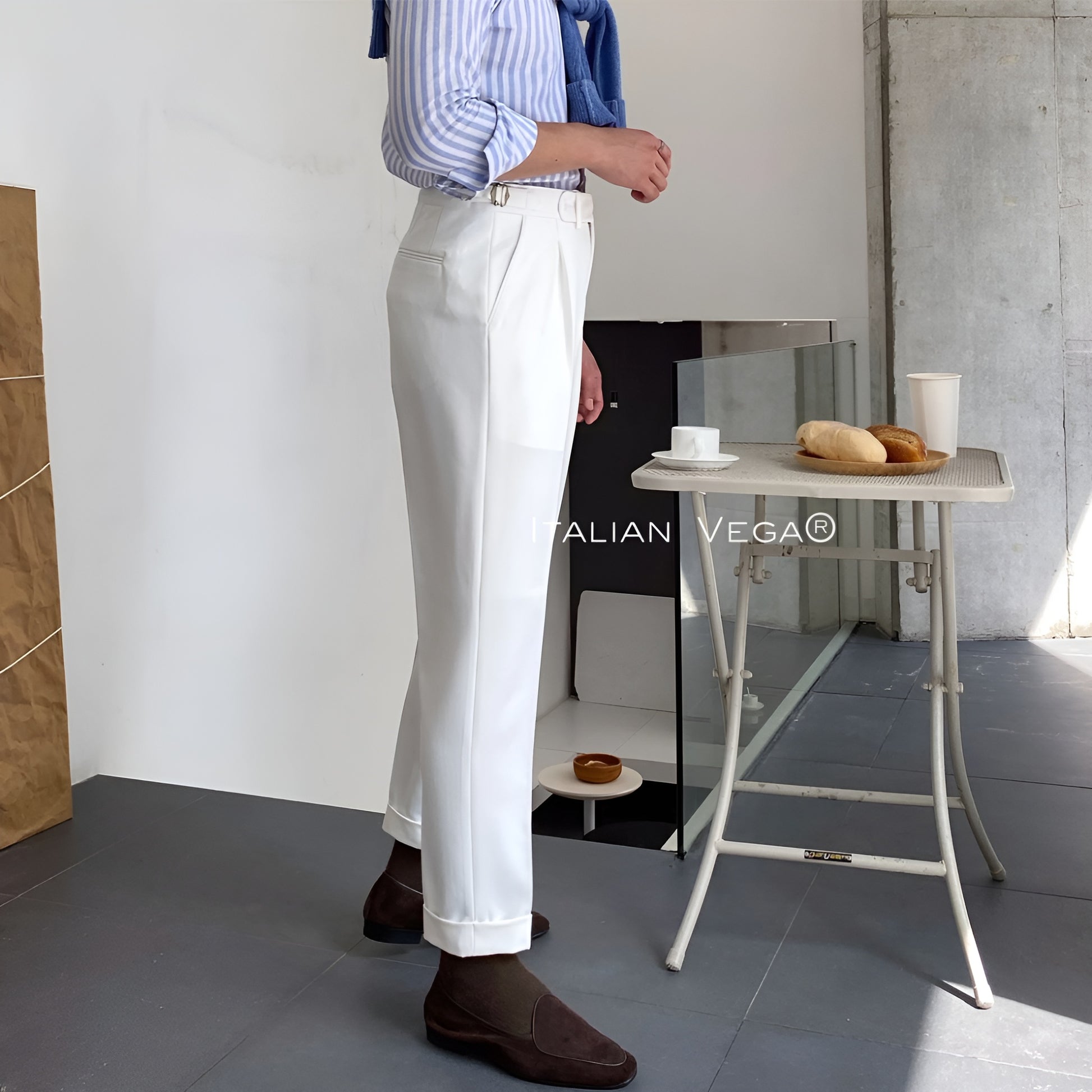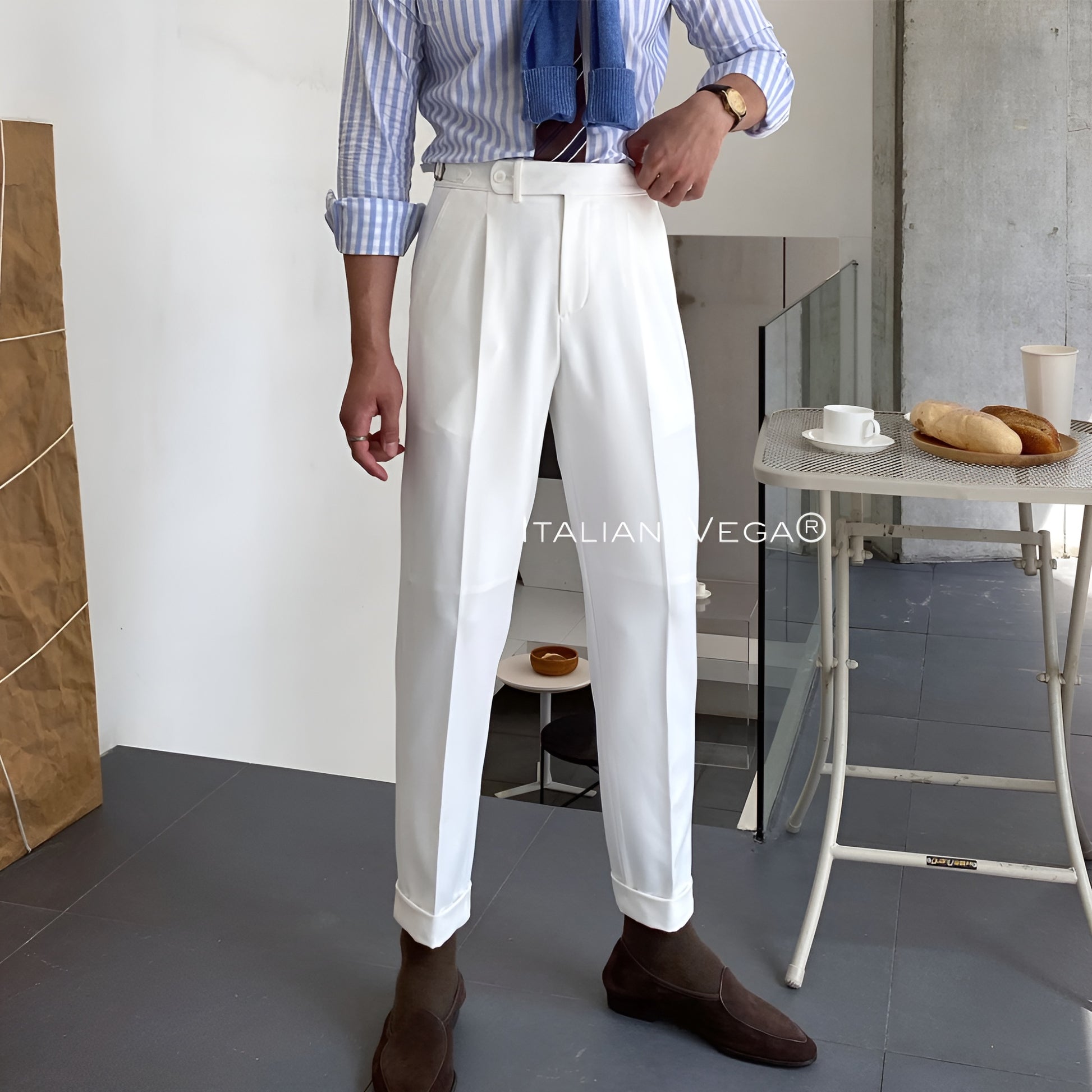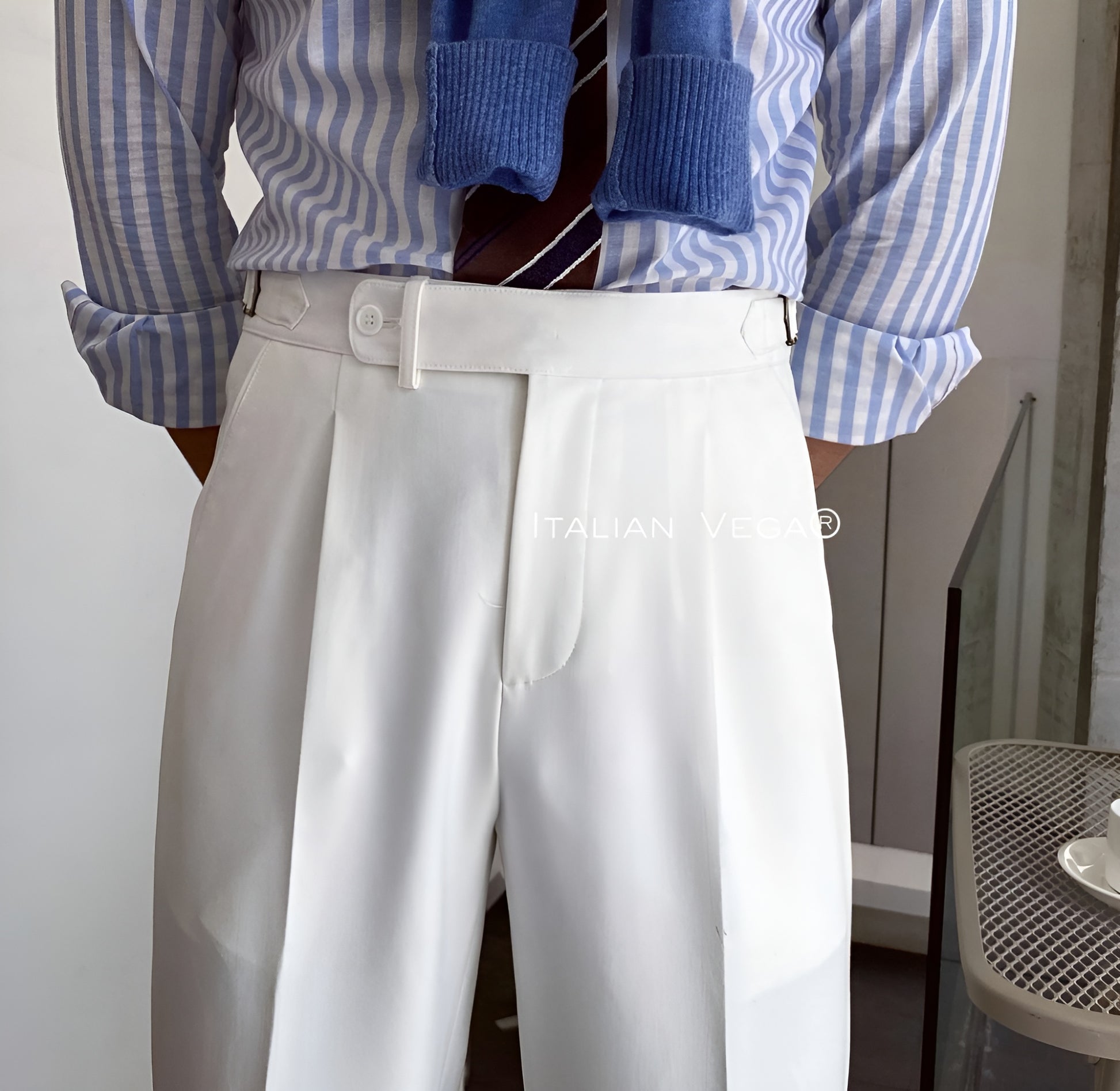 White Italian Elegant Gurkha Trousers by Italian Vega®