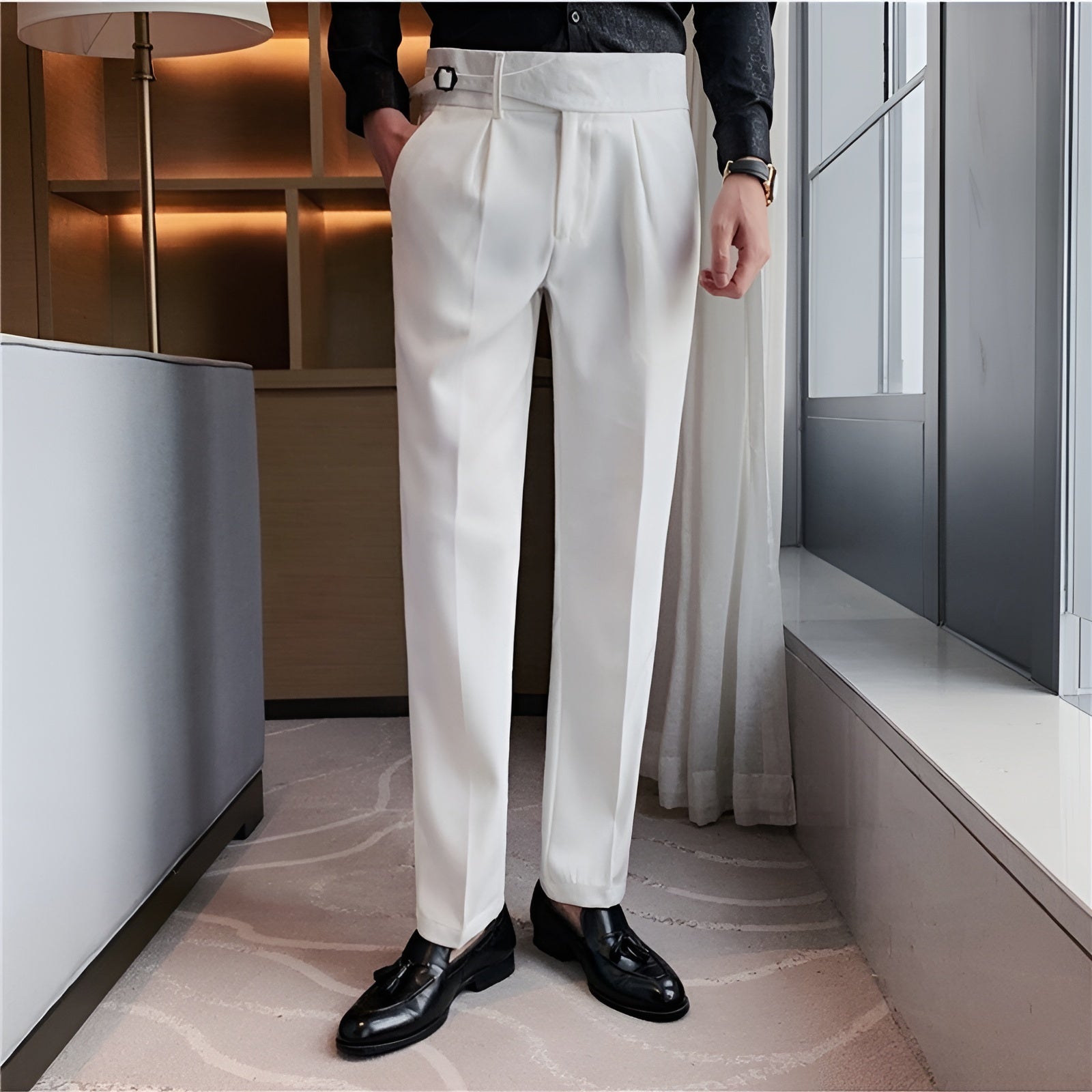 White Single Buckle Gurkha Pants by Italian Vega